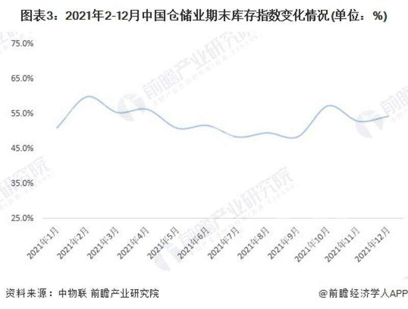 根據(jù)中國物流與采購聯(lián)合數(shù)據(jù),2021年1-12月,中國倉儲(chǔ)業(yè)期末庫存指數(shù)均值為52.9%,保持在榮枯線以上,同比增長2.2個(gè)百分點(diǎn),反映出庫存水平明顯上升,企業(yè)庫存壓力所有上升。